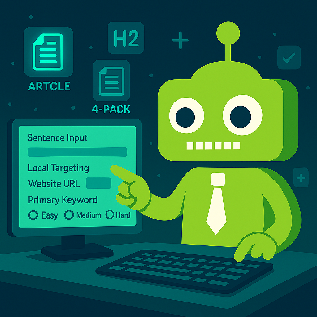 Home Services Generate Articles (Unlimited) Affiliate Program Affiliate Dashboard My Account Get Help Get Started Article Generation Instructions — Single or 4-Pack How-To How to Generate Your Fully SEO-Optimized Blog Post Whether you’re generating 1 article or a 4-Pack, the process is the same.A 4-Pack simply lets you repeat the submission steps for four separate […]